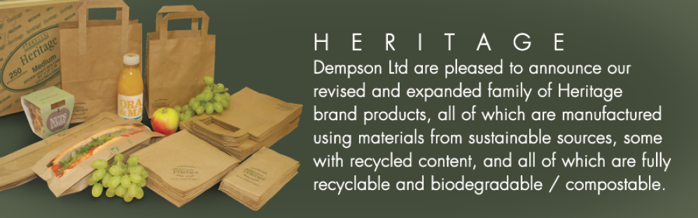Dempson is ISO compliant. However, our view is that, whilst standards and certification are clearly important, it is not just about getting certificates and carrying out the audits.We are passionate about improving the products we provide, the materials we use, our manufacturing processes and the education of our markets and the public so that, ultimately, we will all be using the most appropriate product for the packaging requirement and using less energy and resources to do it. In recent years Dempson has introduced Heritage degradable bags, BioKraft compostable bags, has reduced packaging usage and increased convenience with PortaBag® cup and bottle carriers and many more products by combining our core values of the environment and Dempson Innovation. Our most recent advances have been with the introduction of the revolutionary style and manufacturing process of the new DEMPSON BAGTM, which provides brand enhancing image alongside what we believe is the most materials and energy efficient paper carrier technology available, as well as our digital printing capability.